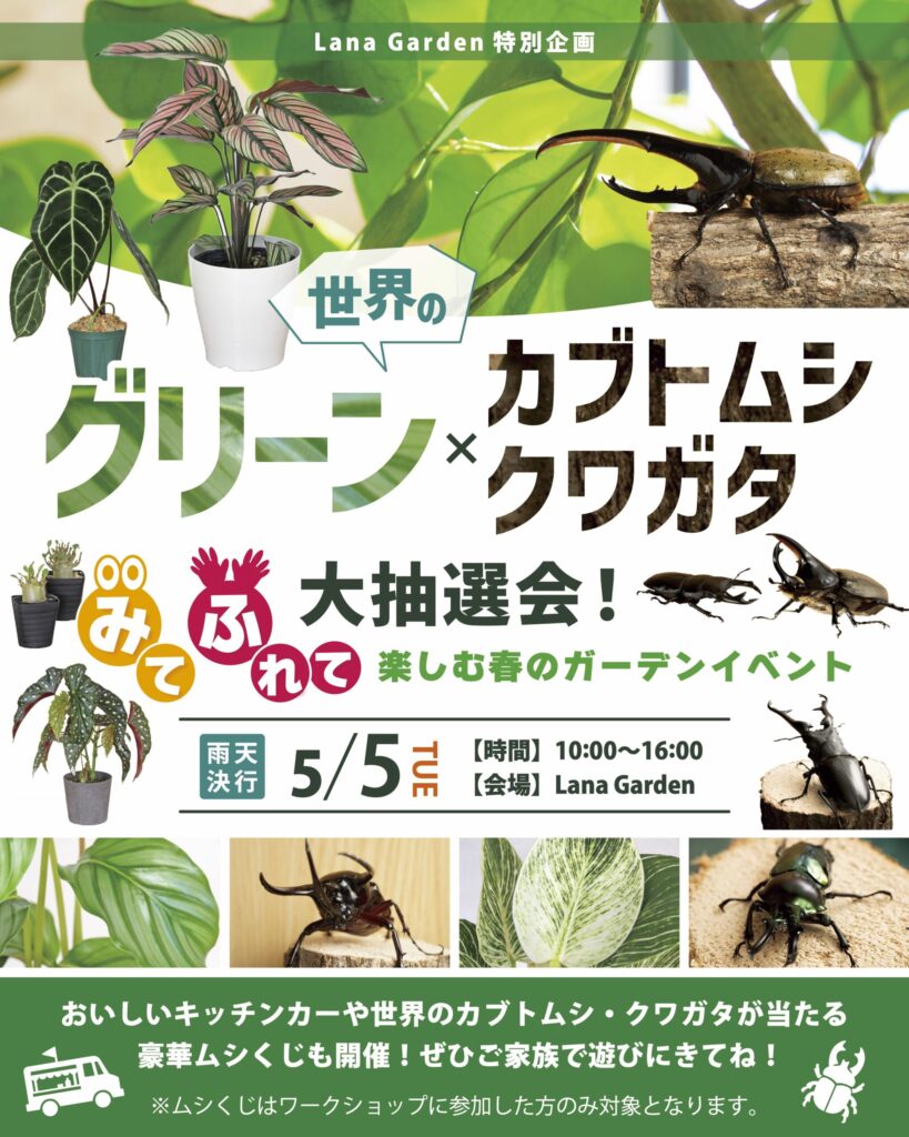 世界の「グリーン×カブトムシ・クワガタ」大抽選会! 〜 みて、ふれて、楽しむ春のガーデンイベント 〜